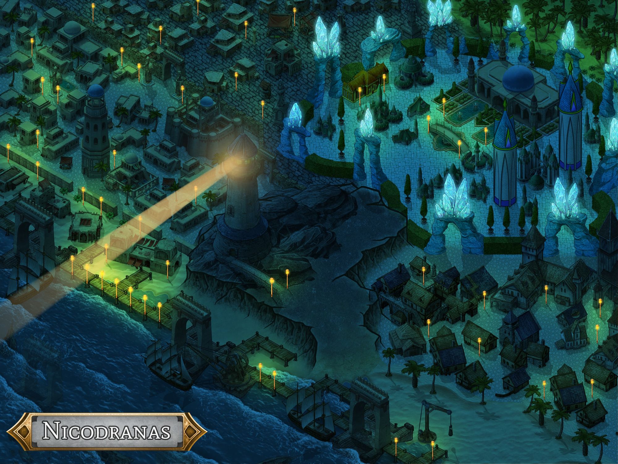 Overlooking the Restless Wharf docks stands a lighthouse of the Wild Mother, where traders and sailors maneuver their goods in and out of the harbor. Local businesses are connected with either the ruling Uludan family or the entrepreneurial mage Yussa Errenis in the Tidepeak Tower, creating an additional level of competition. For those with coin to spend, the Opal Archways offer plenty of indulgent dens, though they are always under the watchful eye of the local Zhelezo guard.