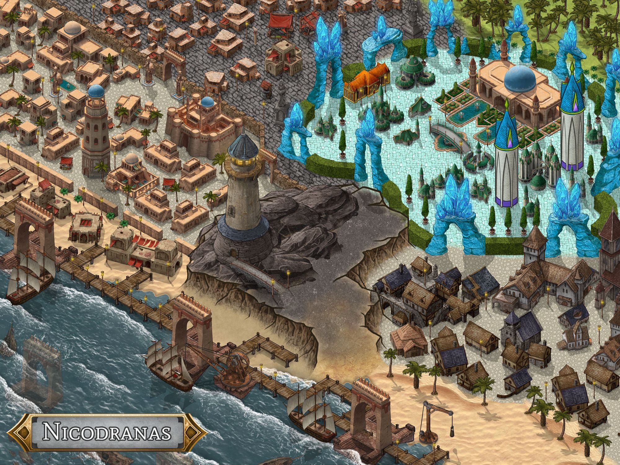The city's name, meaning "gathering of colors" in Draconic, reflects the diverse cultures that clash and mingle within its boundaries. As an embassy state, Nicodranas hosts most diplomatic relations between the Clovis Concord and the Dwendalian Empire. While the second-largest city on the coast, it lacks the bustling pace of its larger sister city, Port Damali, making it preferred by travelers who seek a more relaxed atmosphere.