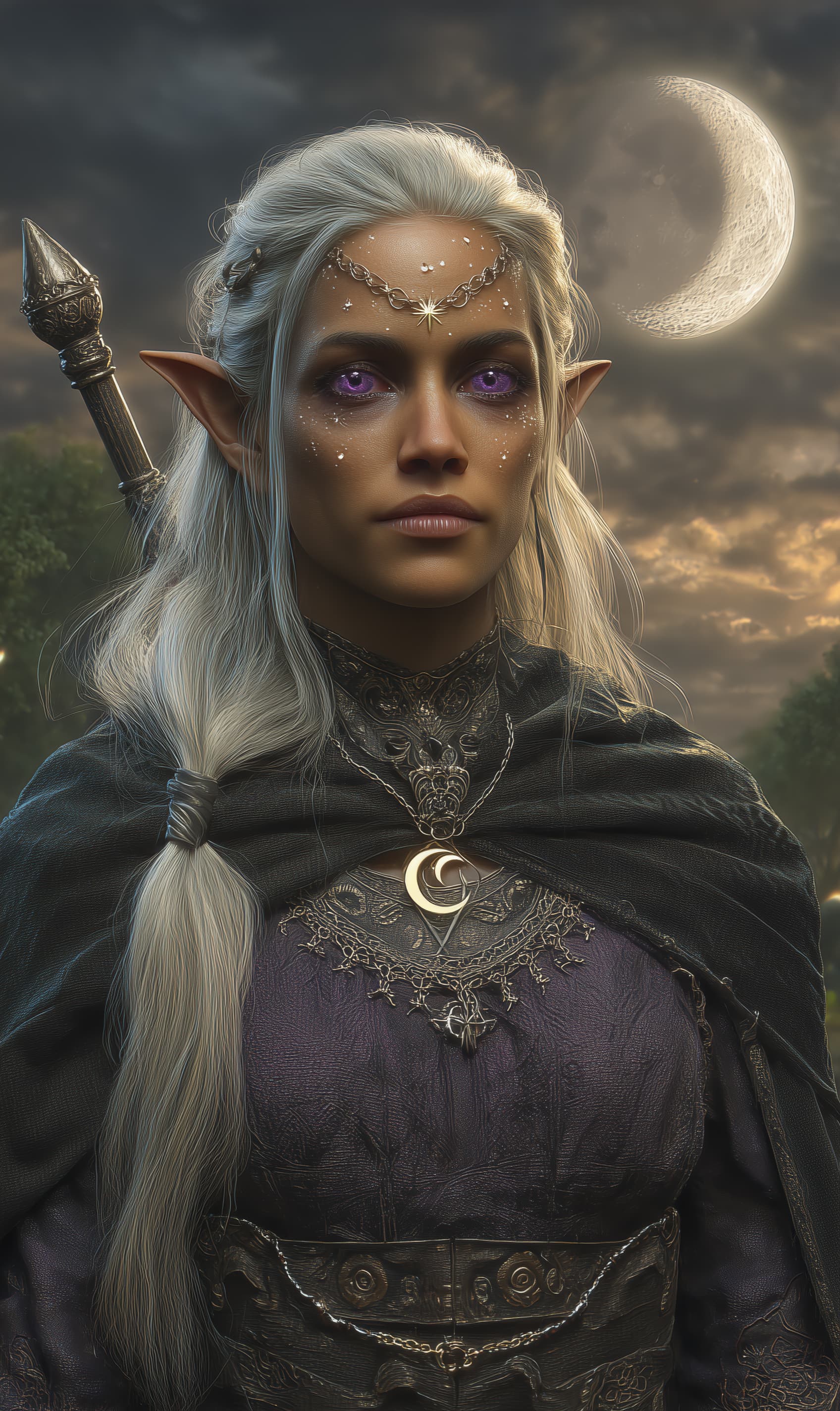 Refusing to ignore what she had seen, she left the comfort of her enclave to seek out orders and traditions that treated night not as an empty span between days, but as a realm with its own inhabitants and laws. She found a small twilight cloister on the outskirts of the Ardent Woods, where clerics walked between dusk and dawn tending to travelers, hunters, and those who couldn’t find peace in sleep. There, she learned to shape divine power into soft radiance that soothed the fearful and seared the things that lurked just beyond mortal perception.
