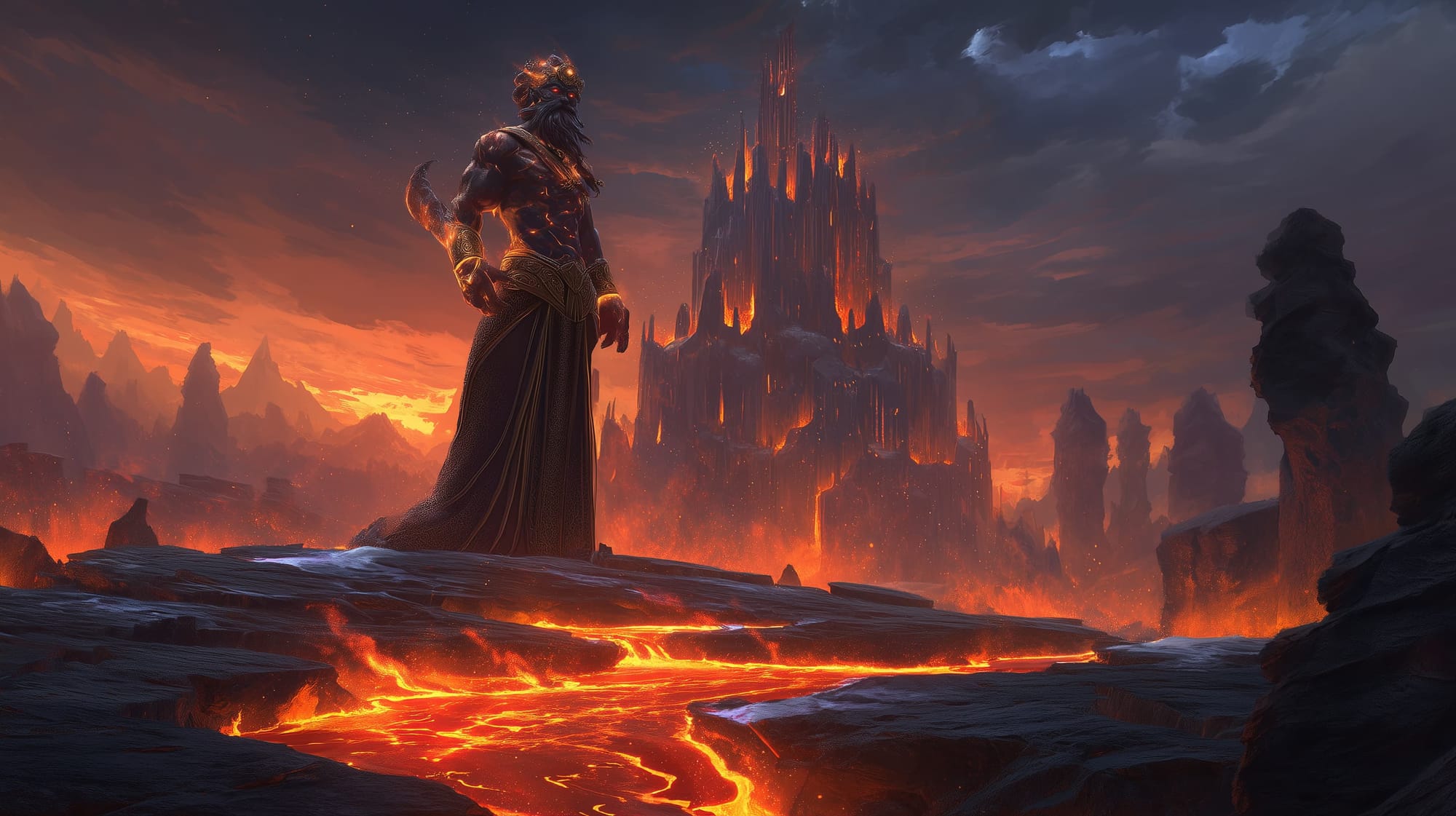 Eventually exiled for growing too powerful, Ashkhar crossed the planar boundary willingly, establishing himself on the Material Plane where resistance was weaker and ambition could burn unchecked. There, he built his empire from volcanic strongholds and enslaved populations.