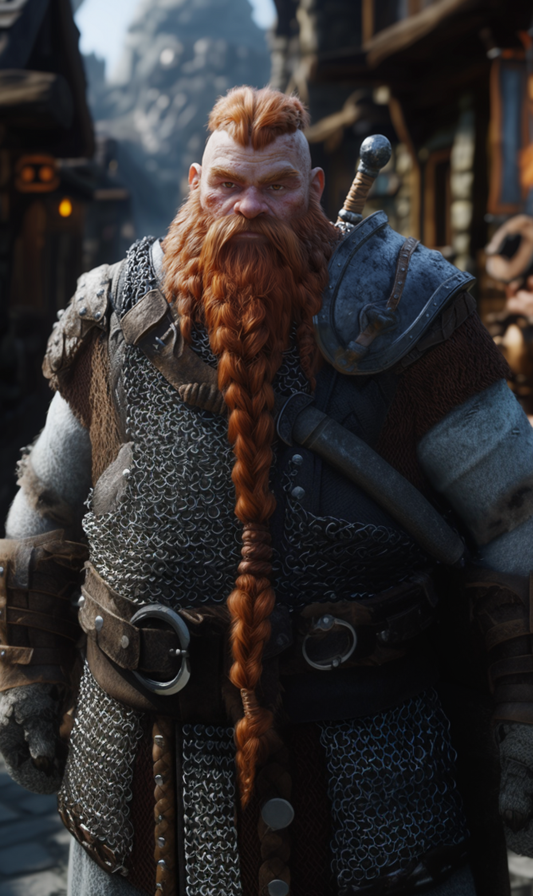 Brynn Windpike is a stocky, broad-shouldered dwarf with a ruddy complexion and a meticulously maintained auburn beard braided into tight knots. His sharp brown eyes are ever-watchful, taking in every detail of his surroundings.