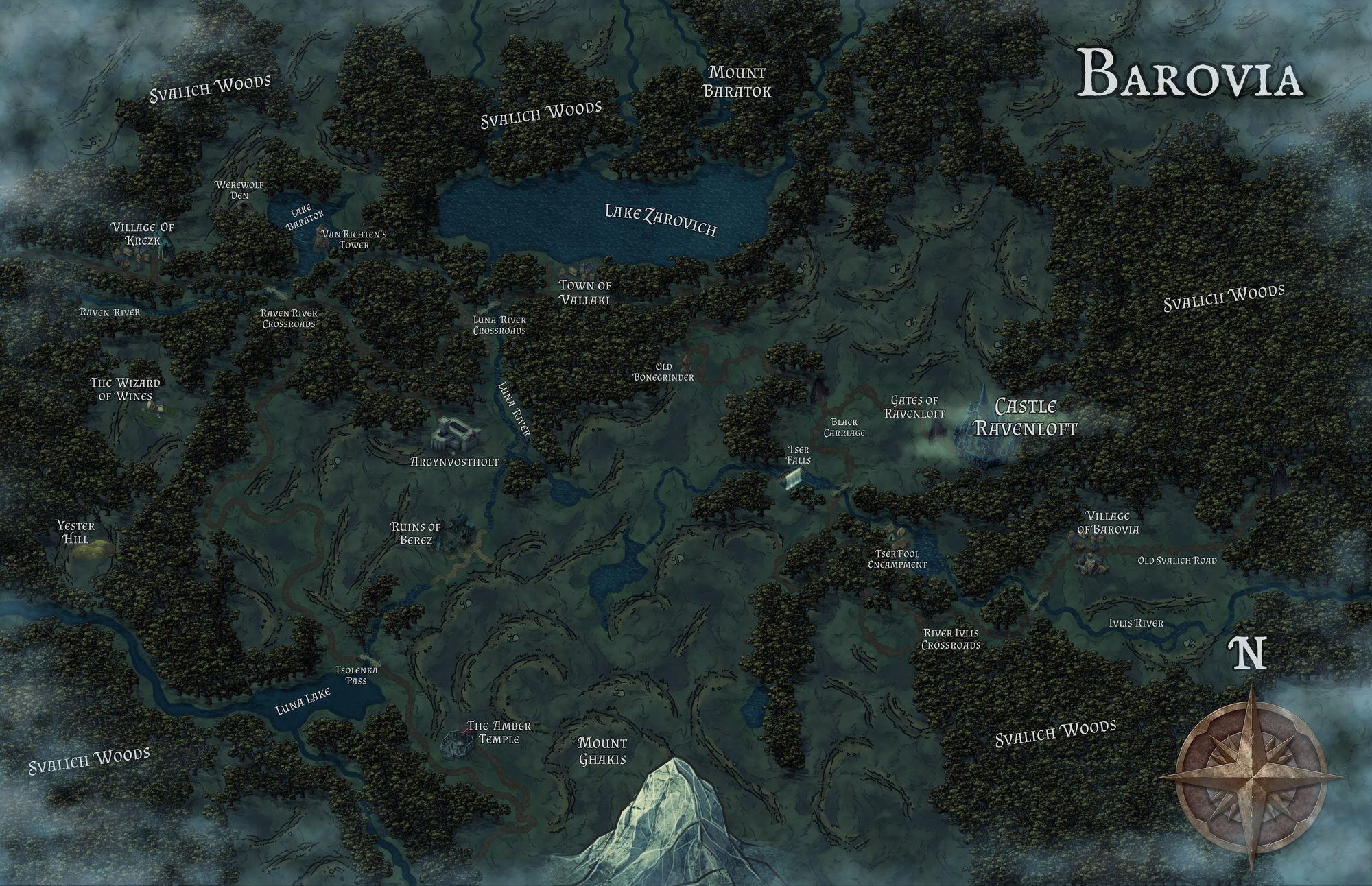 Barovia, a desolate realm cloaked in eternal shadow, is a land of secluded valleys, their isolation intensified by the menacing forests haunted by prowling wolves and the perilous mountains that punctuate its landscape. Beneath dense, perpetual mists, the land languishes in ceaseless gloom.