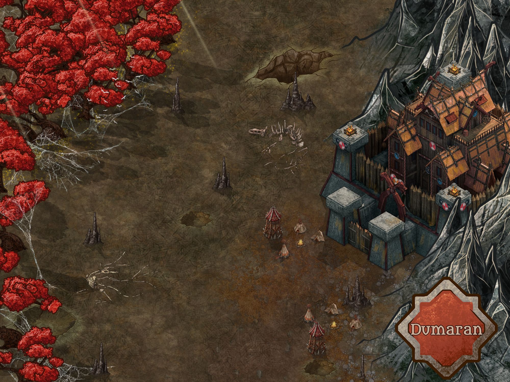 Hidden within the Vermaloc Wildwood, Dumaran, the hobgoblin fortress, stands defiant against the Penumbra Range.