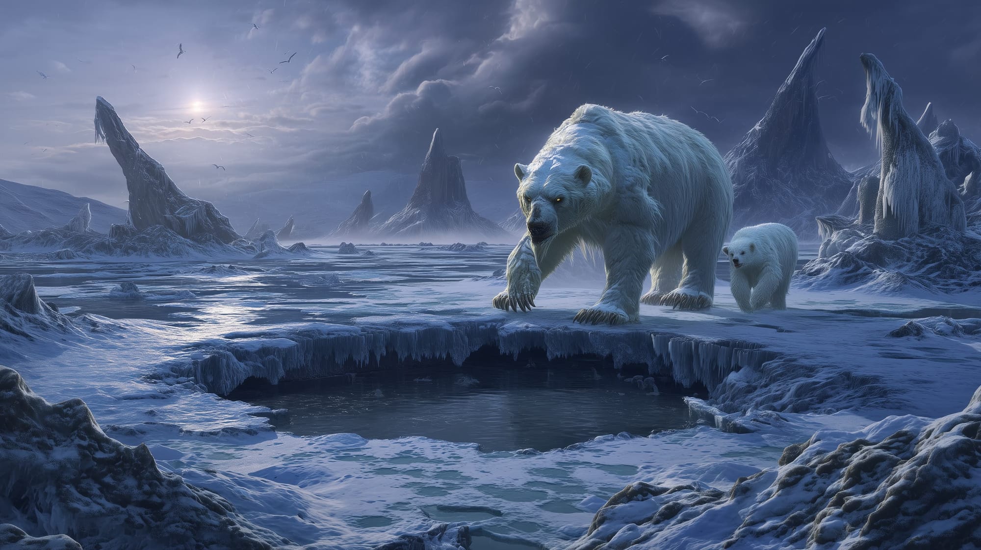 Floe-Queen is the apex hunter of the sea-ice margin where the coastline of the Whispering Tundra meets the sea. Her range stitches seal rookeries, drift-floe bridges, and whale carcass fields; her movements set the rhythm for wolves, foxes, and gulls who follow in her wake. She is not a villain—she is winter’s appetite given shape. To coastal clans she is an omen: if Floe-Queen haunts the rookery early, storms will close the leads; if she lingers inland, the ice will break late. Druids claim she “reads” the breath of the sea through pressure cracks. Hunters respect her as a rival; poachers fear her as a revenant that rises from black water without a sound.