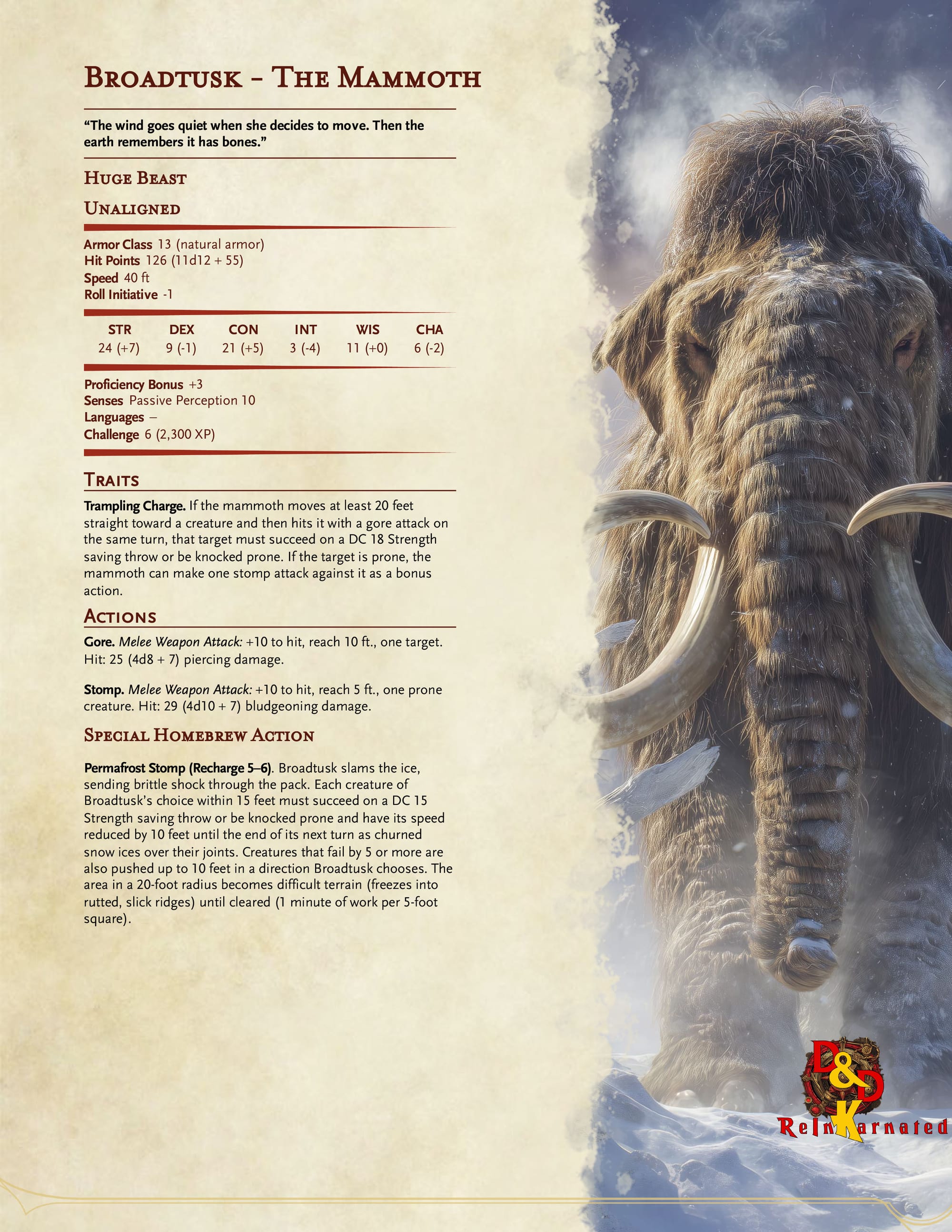 Access to all ReinKarnated content including Homebrew adventures packed with battle maps, NPCs, scenery, tokens, and detailed outlines of one-shot adventures for your campaigns!