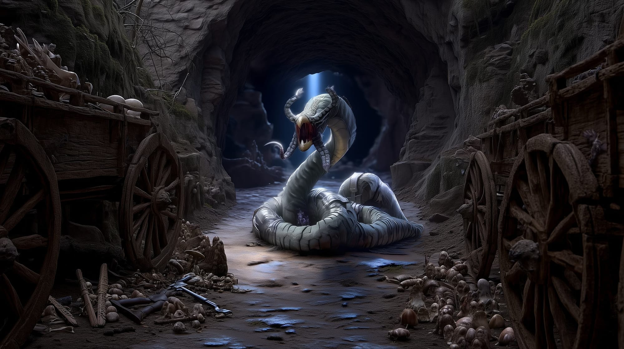 Drow patrols and duergar miners grudgingly respect his territory. Some crews throw him butcher’s scraps or the bodies of executed slaves, hoping to keep his hunger away from their routes. A few clever smugglers have even learned to weaponize him—driving enemies down “Gravelcoil’s tunnel” and letting him do the rest.
