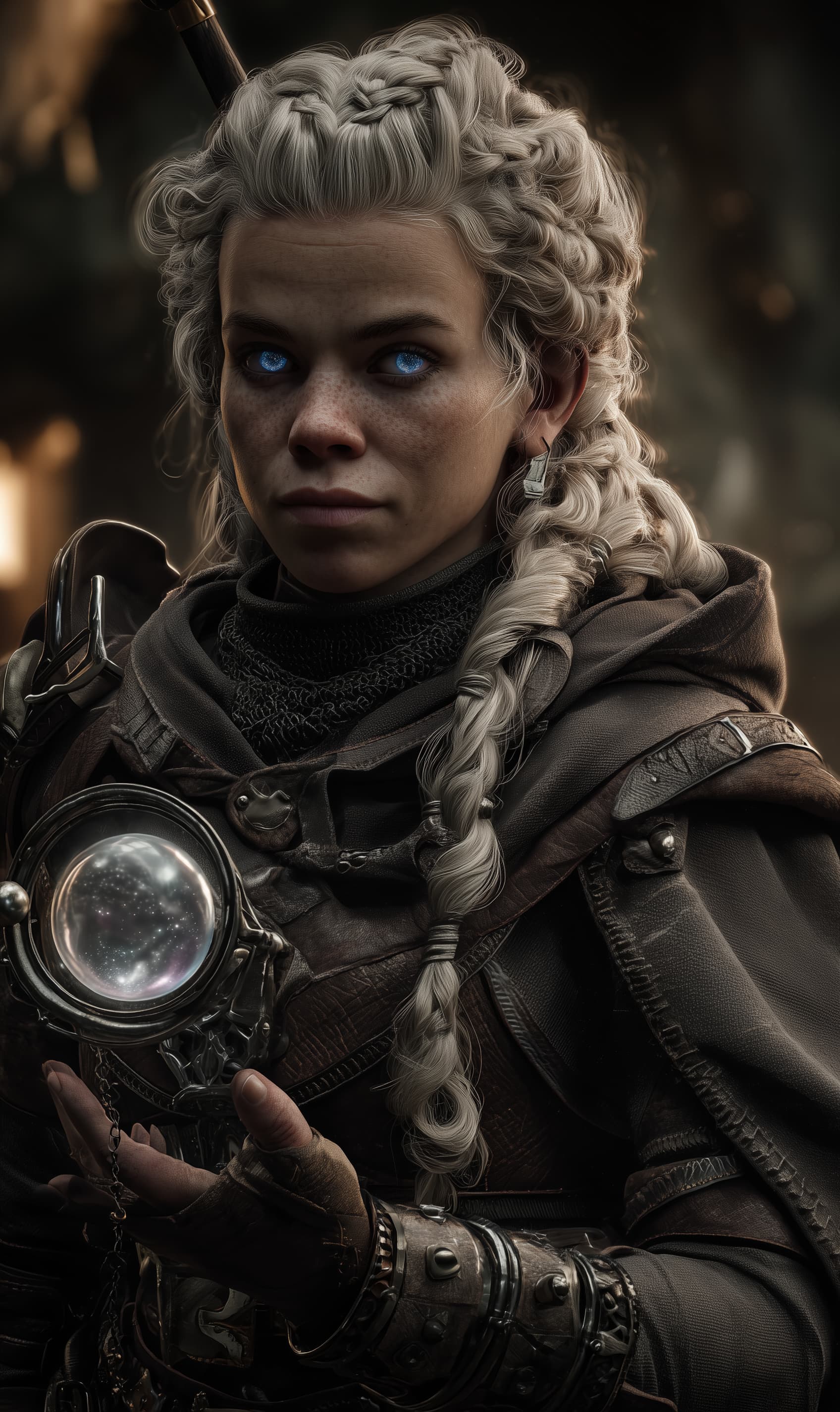 Helja was born in Thorn’del’s lower galleries, where light is a resource and darkness is a constant neighbor. Her family worked in slag hauling and ore sorting—hard labor that left little room for artistry. Helja, however, was the child who took broken shard-lamps apart and rebuilt them into something steadier. Her first “real” creation was a glow-crystal lantern that didn’t flicker in wind tunnels—an invention that saved a work crew from stumbling into an open slag trench.