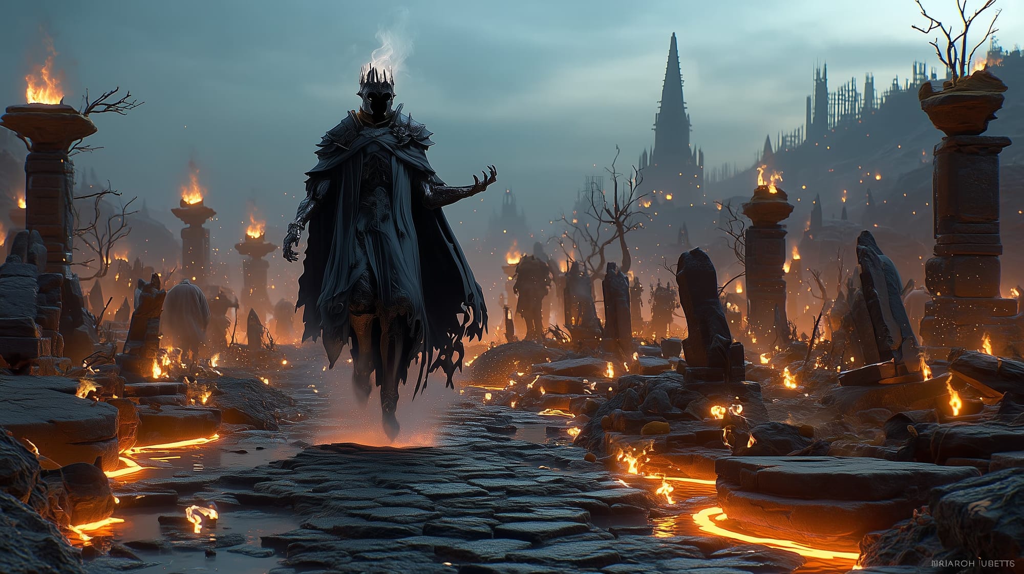 Now a Wraith, Kael drifts above war-torn fields and cursed ruins, drawn to places where faith and blood have failed. He sees the living not as enemies, but as fuel—embers waiting to be consumed. Where he walks, warmth dies, and hope is a memory.