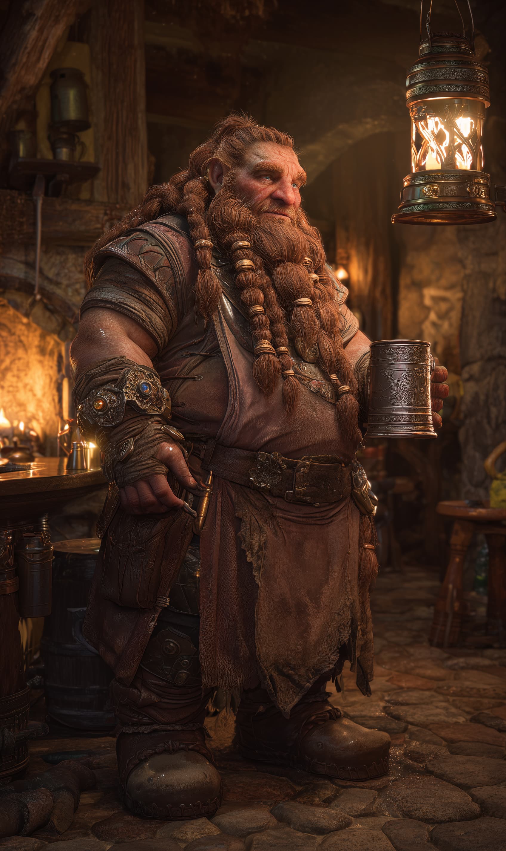A third-generation brewer from the hills near Duskhaven, Korrim inherited the family brewery—but rebuilt it entirely after a magical fermentation mishap turned a whole town square into a sour-ale swamp. Since then, he’s perfected a blend of dwarven tradition and cautious innovation, crafting ales for every season, mood, and occasion. His tavern, The Staggering Goat, is both a social hub and a quiet place of local diplomacy, with Korrim acting as unofficial mediator over mugs of darkroot stout.
