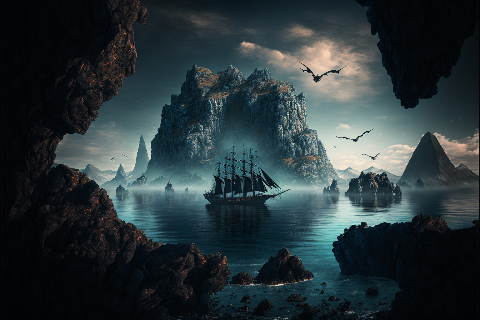 This eerie, fog-shrouded town is built into the southern cliff of Darktow Isle. Over a century ago, Darktow was established as a sanctuary for sailors traveling to Wildemount from Marquet or Tal'Dorei. About forty years ago, a group of aggrieved sailors and traders within the Clovis Concord rebelled against their government's excessive taxation of independent nautical businesses. The rebellious pirates conquered Darktow and claimed it as their headquarters, making this town the beating heart of piracy in the Lucidian Ocean.
