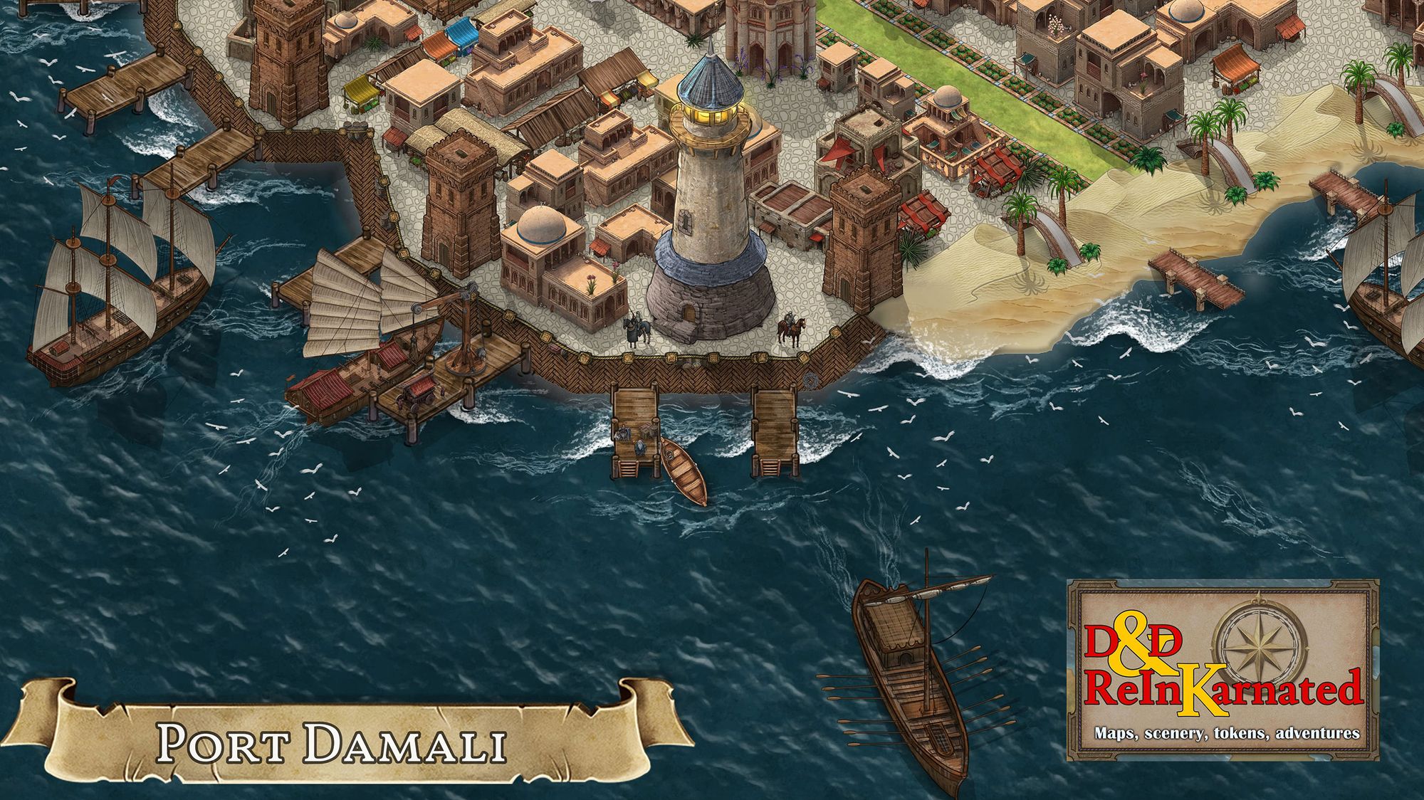 Port Damali is a bustling city filled with music, color, and commerce. The massive port hosts ships from all around the world, creating a mishmash of cultures and trades that mingle to form the society of Port Damali.