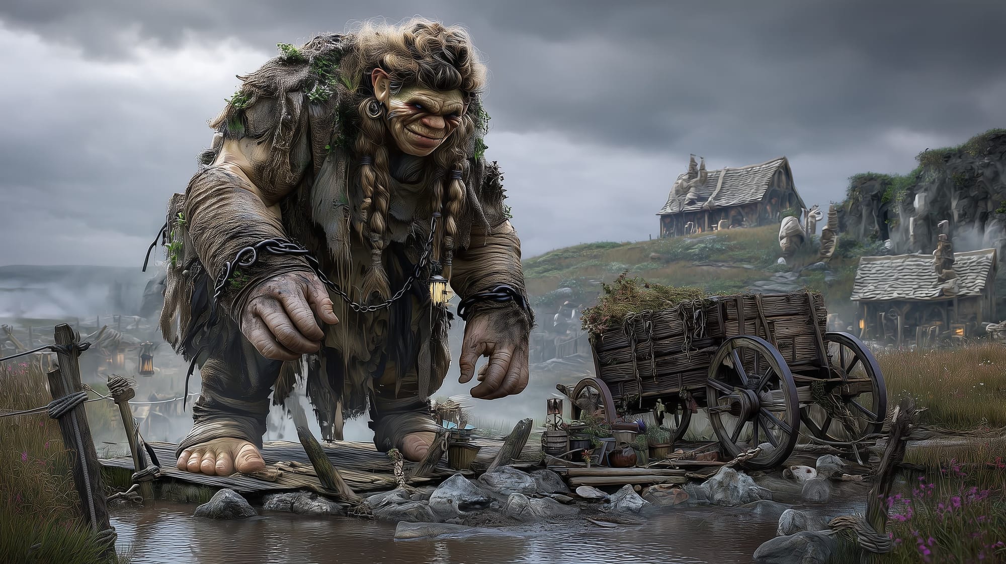 Mogra once traveled with other hill giants along the wet hills and boglands, surviving by brute foraging and casual violence. Then came a lean season—hard frost, thin game, frozen roots—and hunger rewired her into something sharper and meaner. She lived by eating what others wouldn’t: rancid carcasses, old hides, half-rotten tubers, stones warmed in firepits to trick her gut into feeling full.