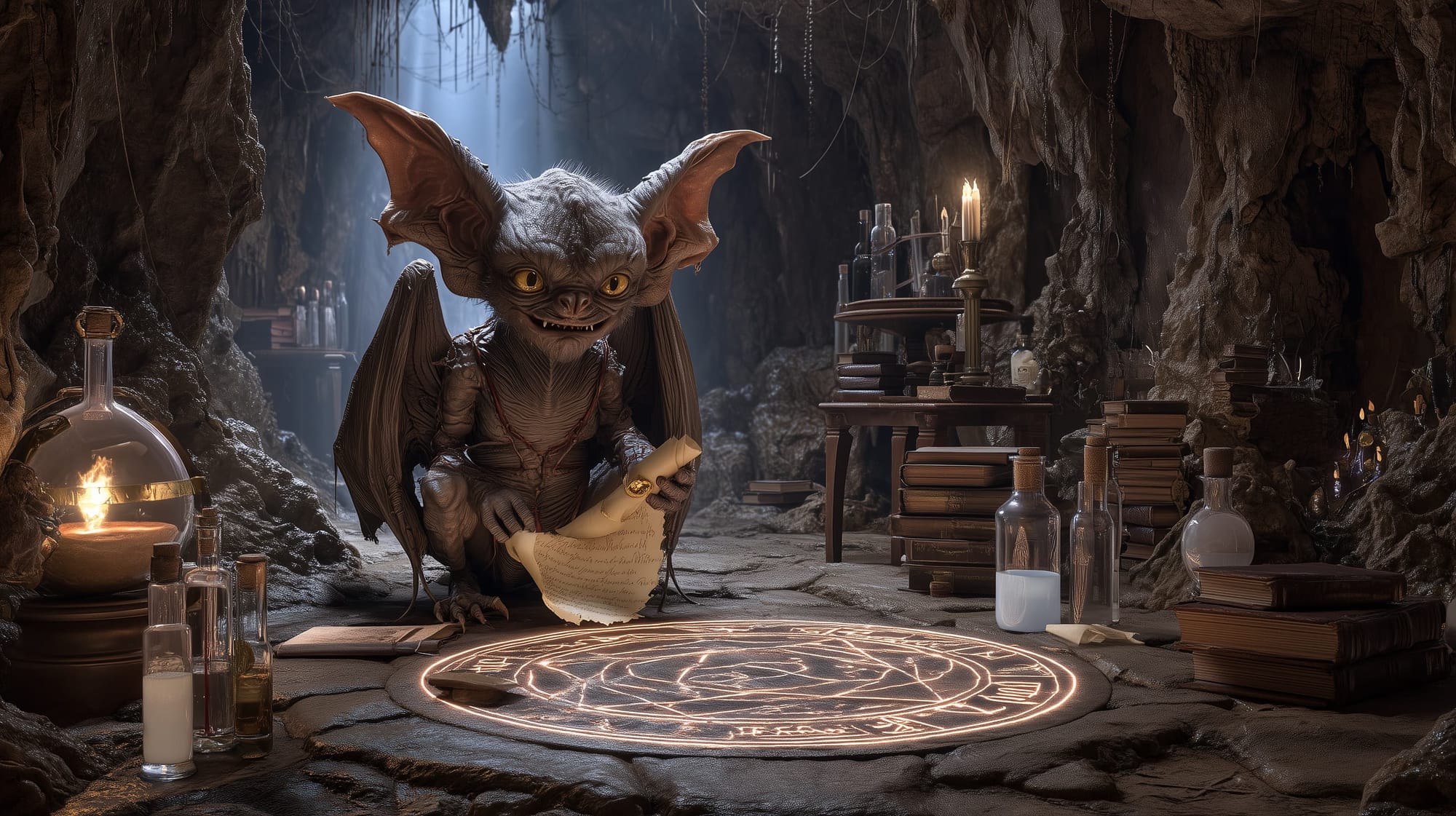 Over time, he refined his purpose: not as a mere familiar, but as an independent extraplanar agent, offering bureaucratic “services” to mortals, devils, demons, and even fae. He now operates from roaming contract circles, sometimes found midair in volcanic caverns, abandoned wizard towers, or wandering the planes, following the scent of unfiled magical obligations.