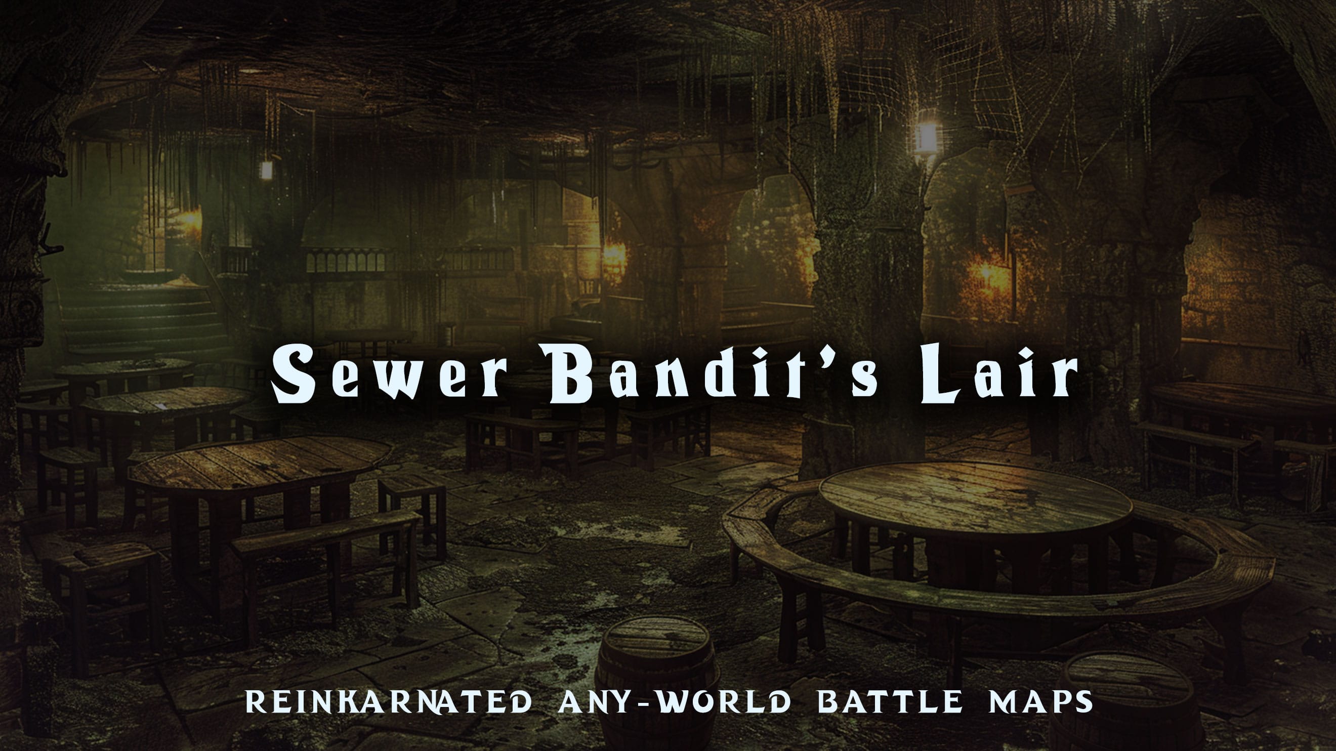 This map is perfect for encounters involving infiltration missions, rescue operations, and loot or resource gathering. The lair can host multiple combat encounters with bandits and their allies. The corridors outside the lair, open sewage channels, cluttered rooms, and strategic points like an armory or storage areas offer varied terrain for tactical battles.
