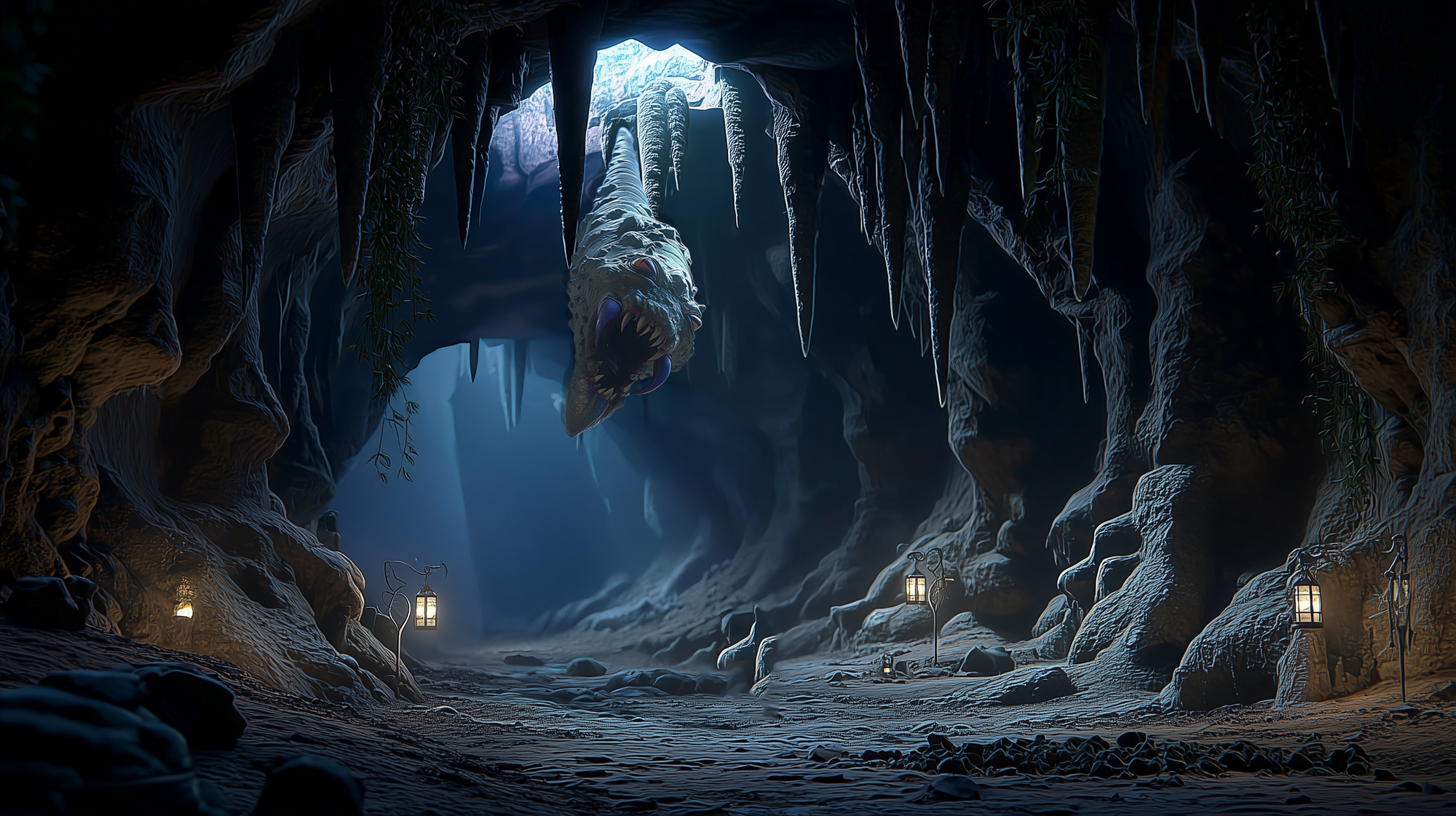Over time, Shardplunge migrated into the tallest part of the chamber—now called the Needle Vault—where traffic bottlenecks between three adjoining tunnels. Here, every party must pass beneath a forest of hanging stone. Here, he chooses when to be a rock and when to be a falling death.
