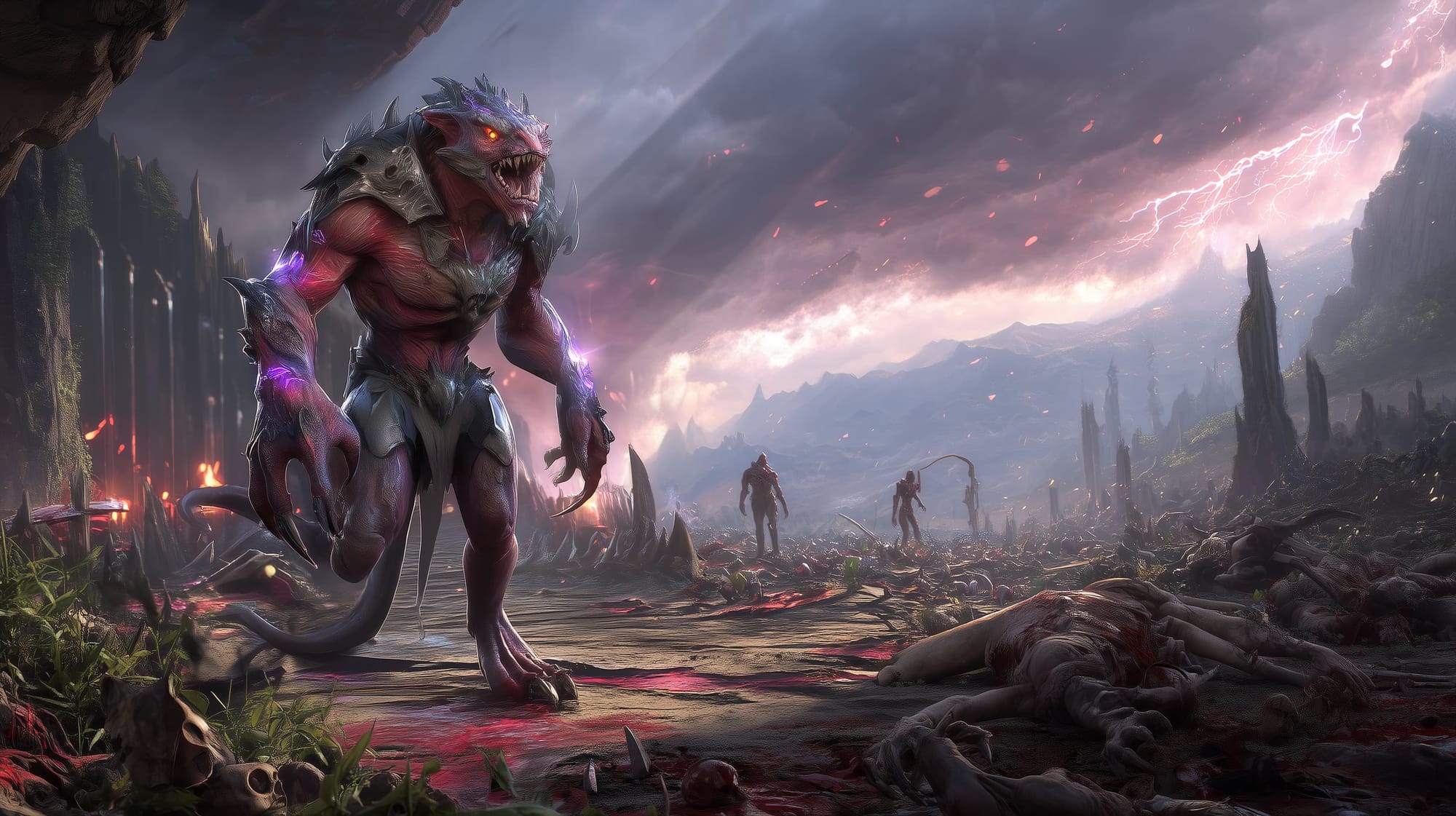 Skivvlex’s origin is whispered of even in Limbo. Born during a chaotic convergence between a tear in the Weave and a rage-blessed storm in the Blightgrove of Veridya, he was immediately unstable — growing beyond slaadi norms. The Brood-Torrent developed the ability to spawn multiple corrupted slaadlings within minutes of infecting a host, often bypassing incubation entirely.