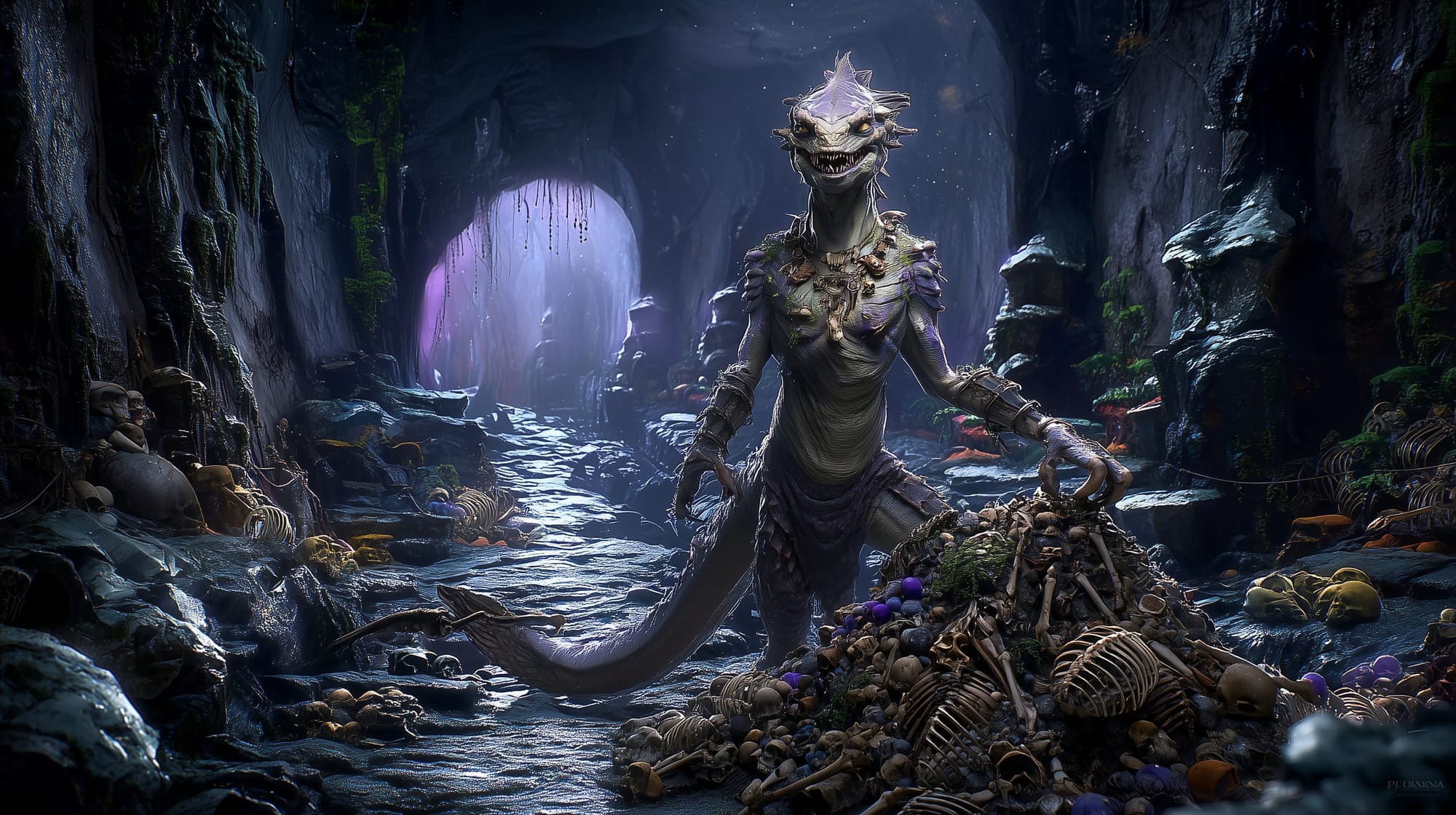 Sszarka hatched in a troglodyte clutch that lived on the edge of everyone else’s filth. Her tribe’s “territory” was a tangle of drainage tunnels beneath a duergar smeltery and an old drow slave pen. Waste—both mundane and horrific—flowed down constantly.
