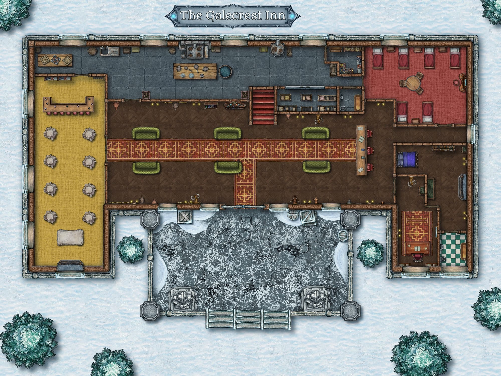 The Frosted Glare is a chilling Dungeons & Dragons adventure set in the snowbound heights of Eldervast’s Tempest Peaks. Suitable for a party of adventurers level 7–8, this module combines gothic horror and psychological suspense as the party becomes caretakers of the isolated Galecrest Inn during the dead of winter. The inn, renowned for its grandeur and eerie beauty, harbors dark secrets beneath its frost-veiled walls.
