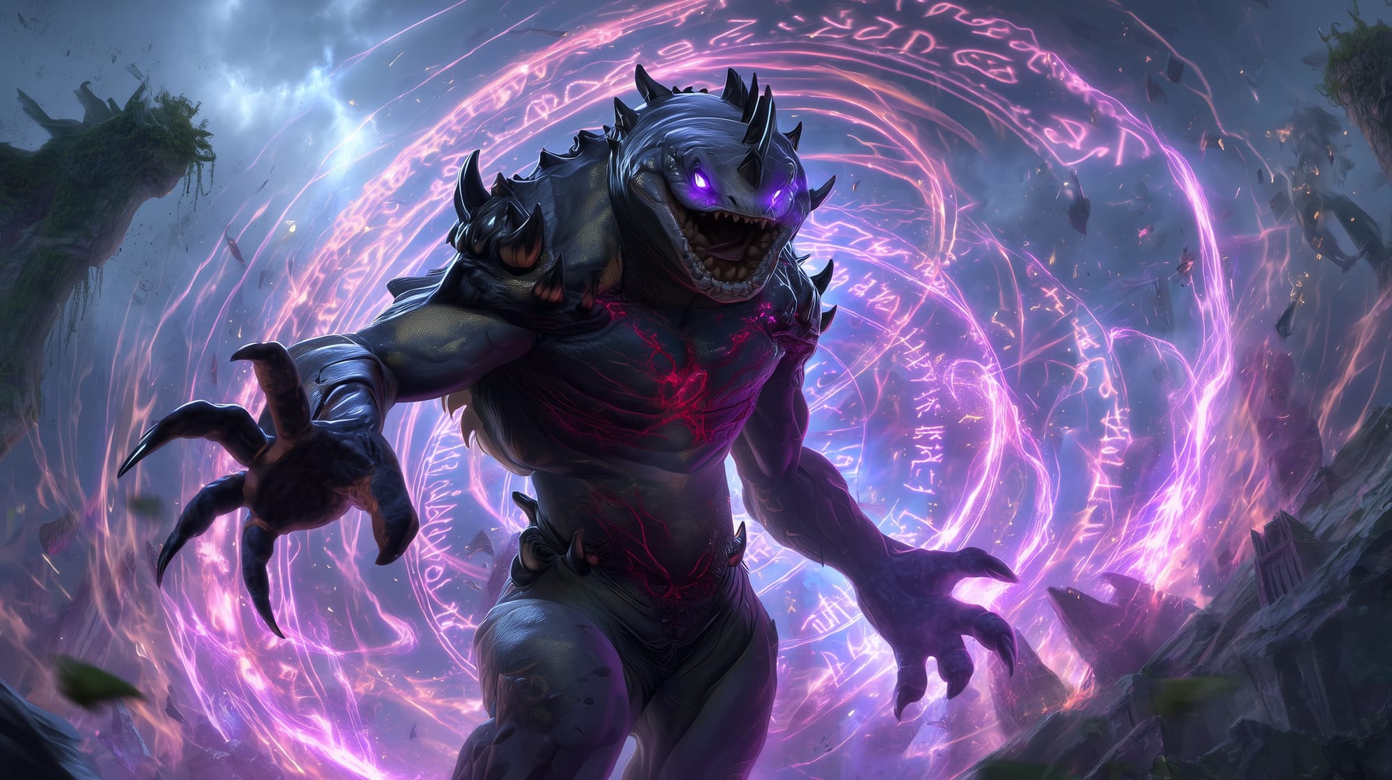 A Death Slaad is not born — it is forged. When a red or blue slaad matures unnaturally through arcane influence, it sheds both color and purpose, becoming a reaper of order. Thrylvox, however, did not wait to evolve — he hunted his own transformation, devouring dozens of his kin, mages, and spellcasters until his form collapsed inward and re-emerged as something primordial.