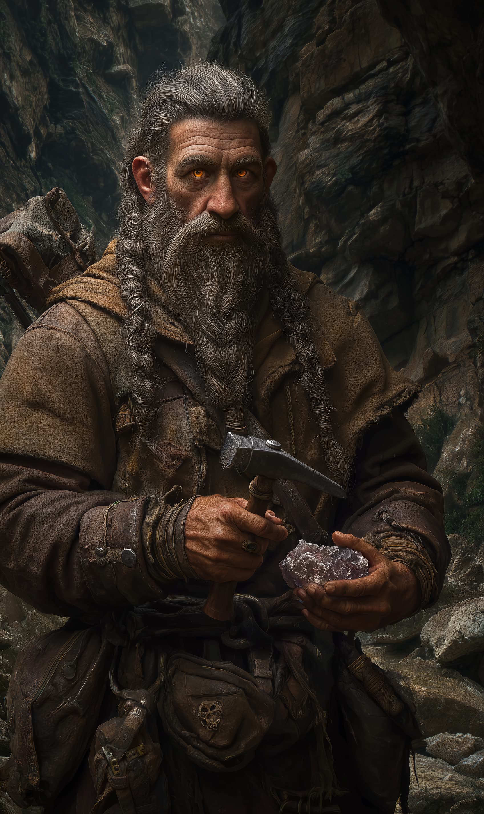Torrik’s obsession made him unwelcome in polite guild halls. He started taking work outside the city-forges—walking the Briarthorn cliff faces, climbing half-abandoned veins, and prospecting the bluffs where salt wind and rain reveal new seams after every storm. He sells ore when he must, but what he truly trades is information: where the mountain is stable, where it isn’t, and what the rock is trying to warn people about.