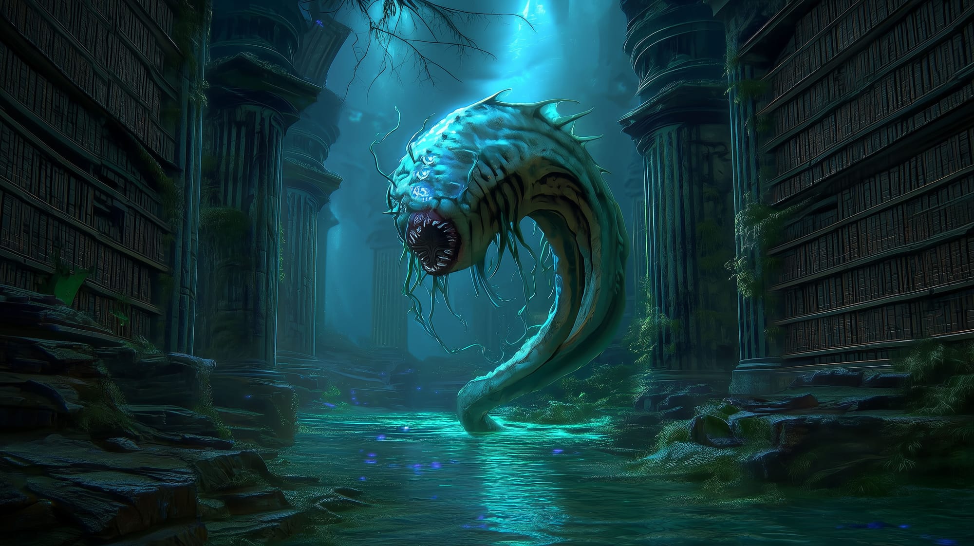In the brackish stillness beneath the flooded ruin of Caer-Thalax, a being lingers whose memory stretches to the world’s first breaths. Ul’Xorith the Remnant Deep is a glistening, coiling aboleth whose voice pulses directly into the mind, laden with truths too old for sanity.