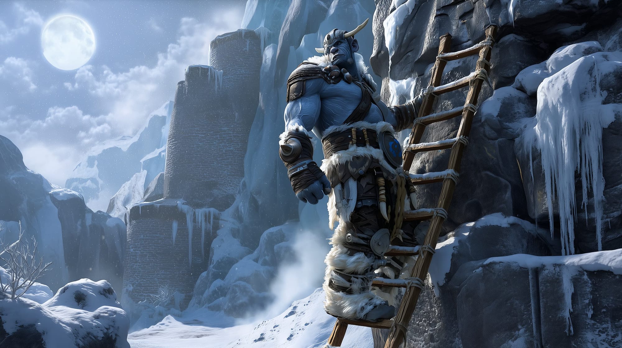 Urzol is Jarl Hrokan’s ologunner—the ladder captain and shield-line foreman who turns troll chaos into breach geometry. Orogs under him are not raiders; they’re craftsmen of the assault: setting ladder bases on glare ice, pinning rungs with bone wedges, and creeping under tower angles where arrows can’t find purchase. Tribal warriors follow his chalk marks; ice trolls climb where he taps; even frost giants wait for his two knocks before the push. To defenders, Urzol is the quiet metronome of a siege—every ten heartbeats, something gets closer.