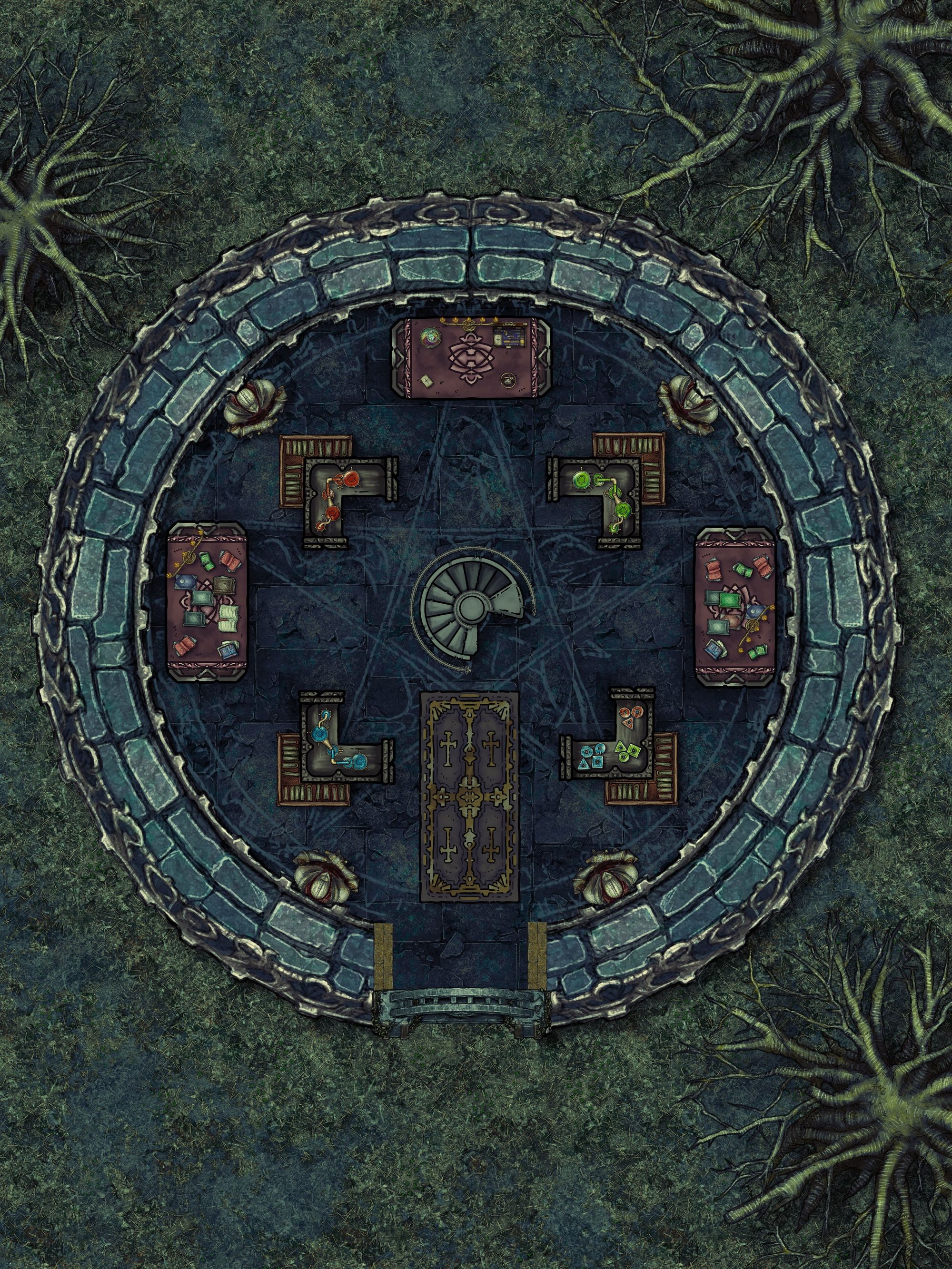 A tower on the northern outskirts of the grounds acts as Trent's summer home, where he houses and trains the prospective members of his Volstruckers, an elite group of spies and assassins who use magic to do the assembly's dirty work.