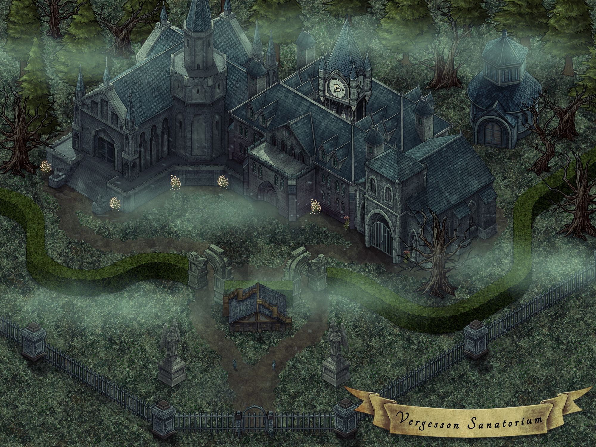 Assembled by the Cerberus Assembly, the sanatorium serves as a sanctuary for those grappling with dire physical and mental ailments. Guided by the steadfast hand of Director Gertrude Wagner, the institution operates under the Crown's vigilant gaze. For those in need and possessing the means, its doors offer salvation. Yet, veiled within the mansion's benevolence, a shadowed abyss awaits, concealed as a purgatory for those who defy the political current.