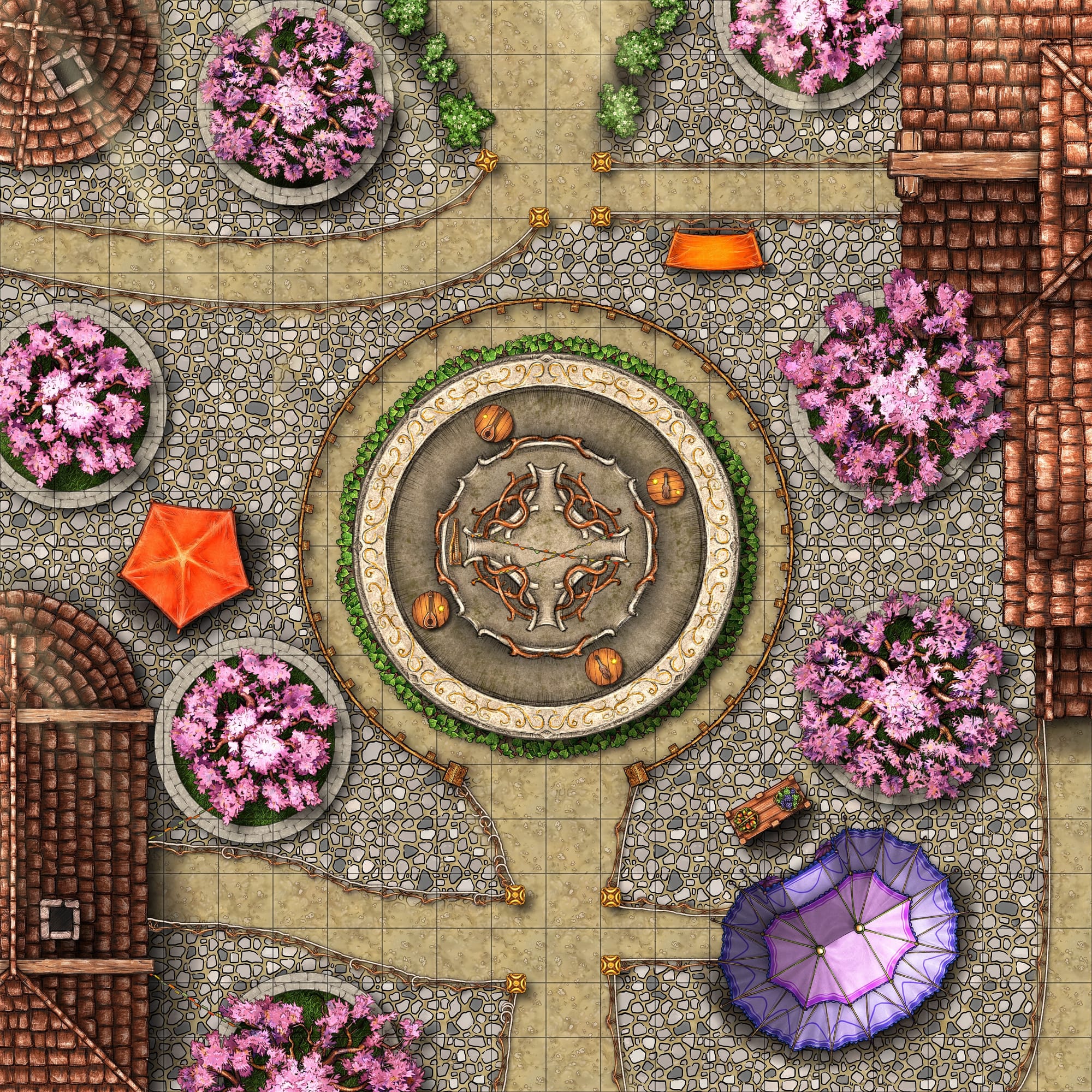 In addition to social interactions, this map can be used for ambushes, chases, or other action-oriented encounters. The tight pathways, dense crowds, and market stalls provide plenty of cover and obstacles, creating opportunities for strategic movement or stealth. The vibrant setting can easily transform into a chaotic battleground if danger arises, such as a sudden attack during a festival or a thief running through the square.