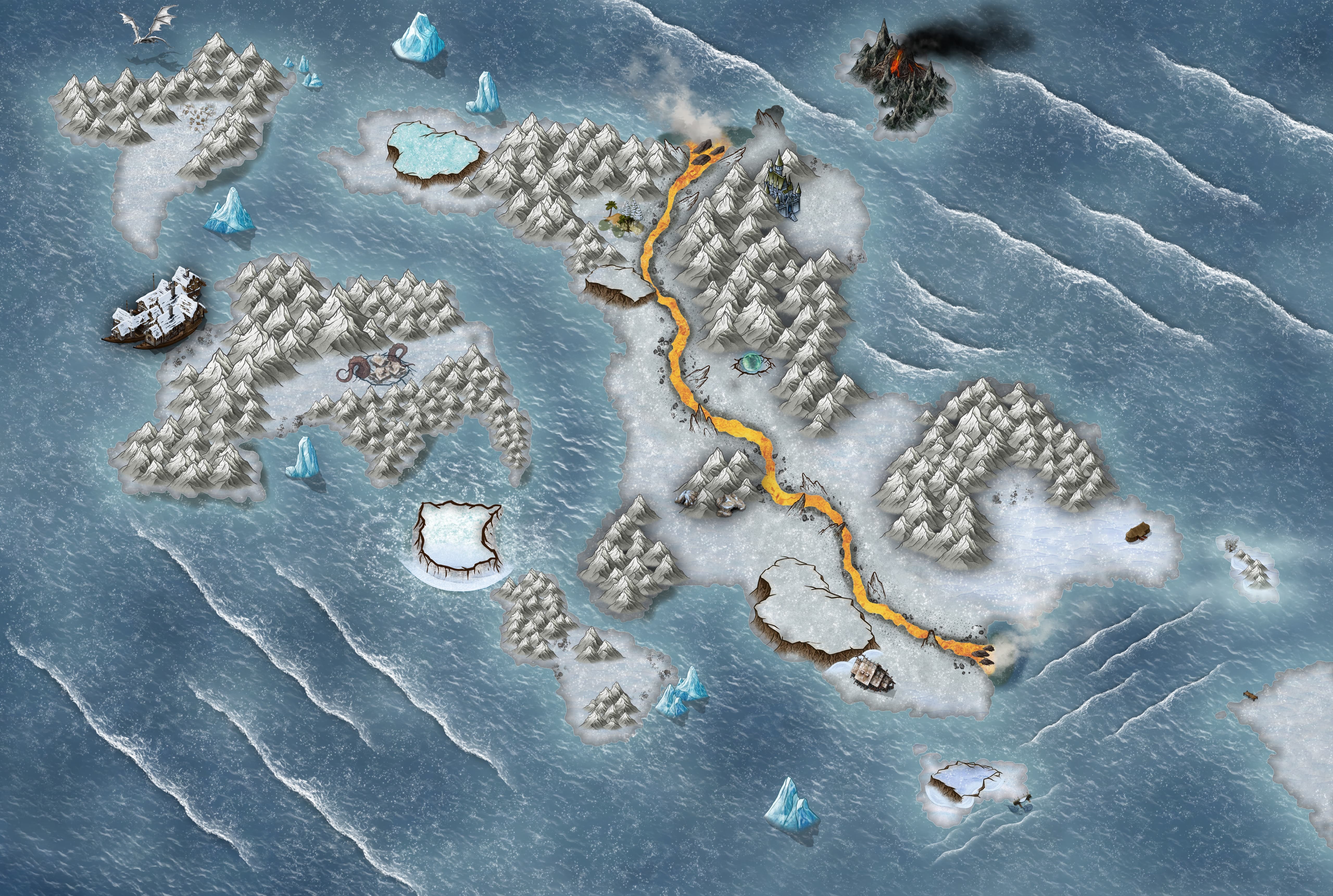 Imposing islands of ice, danger, and powerful, forgotten relics.