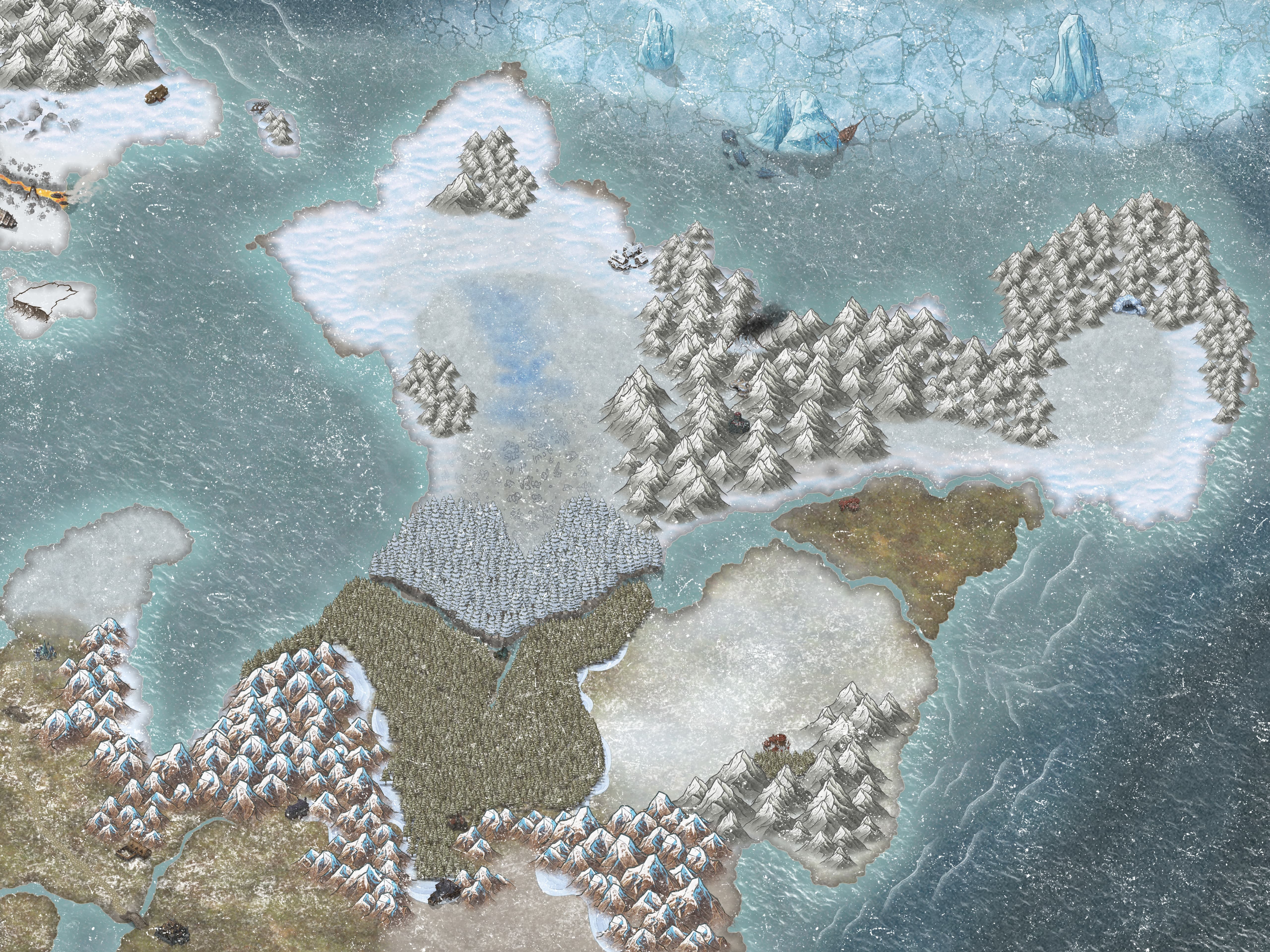Located far to the north of Wildemount are the formidable icy islands known as Eiselcross. For ages, most of the world disregarded Eiselcross as a frozen wasteland of perpetual blizzards and monstrous yetis. Despite being long ignored and dismissed by much of the world, Eiselcross has a rugged and austere beauty that draws in explorers and adventurers from all corners of the globe. Icy mountains loom over frozen tundras, with ancient glaciers carving out deep valleys that hide secrets from long ago. The harsh weather patterns and treacherous terrain make travel through the region perilous, but for those willing to brave the elements, the promise of discovery and untold riches is an irresistible lure. Beneath the surface of the ice and snow lie ruins of long-forgotten civilizations and the remnants of powerful arcane artifacts, waiting to be uncovered by those brave enough to seek them out.