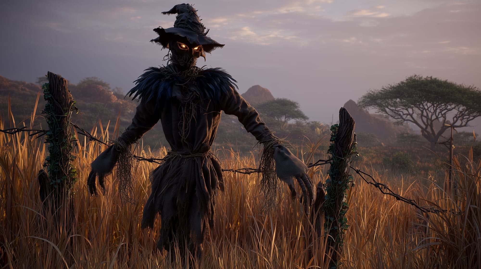 It now haunts forgotten farmland across Veridya — especially the Moonglow Savanna and the Duskhaven borderlands, drawn to cursed soil, failing crops, and whispered superstitions. Folk tell of a scarecrow that shifts rows when no one watches, that mimics laughter it shouldn't know, that turns fields into graveyards for trespassers and liars.