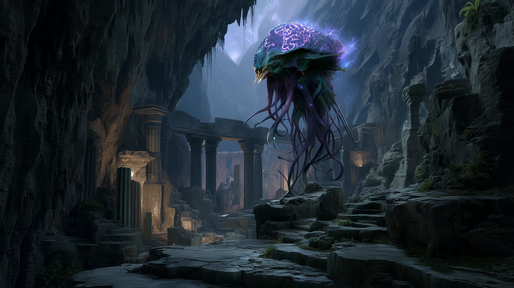 Grell are typically lone hunters, intellect-driven aberrants that drift through the Underdark or ancient ruins feeding on thought. But Xelz’thar is a paradox — a Grell who believes in hierarchy. Calling itself “The Ascendant Mind,” it considers itself evolved beyond feeding and instead seeks to curate knowledge — by devouring and preserving memories within its neural core.