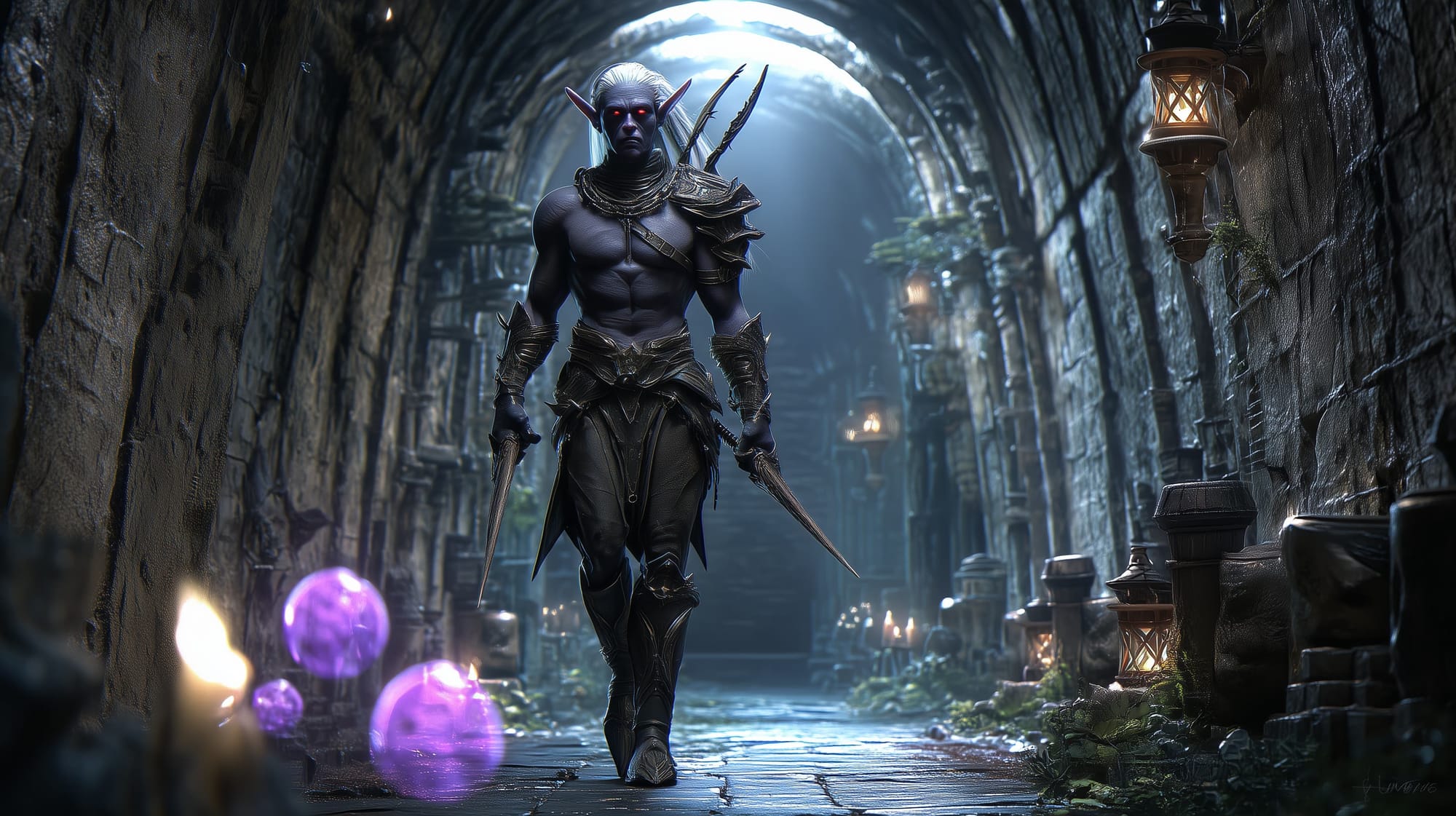 Now, Zhaerun walks a narrow line: loyal to his house but deeply aware that its priestesses would sacrifice him without a second thought. He cultivates pragmatic alliances with duergar, svirfneblin, and even certain surface mercenaries, always ready with an exit route if the webs of politics tighten around his throat.